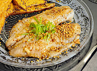 נתחי חזה עוף עסיסיים בניחוח לימוני עם בטטה צלויה - קורנפלור, שמן זית, מלח, פלפל, סילאן, כמון, חזה עוף, לימון, בצל