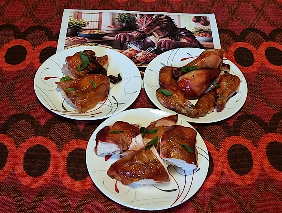 עוף שלם צלוי בגריל ומזוגג בזיגוג בטעמים סיניים